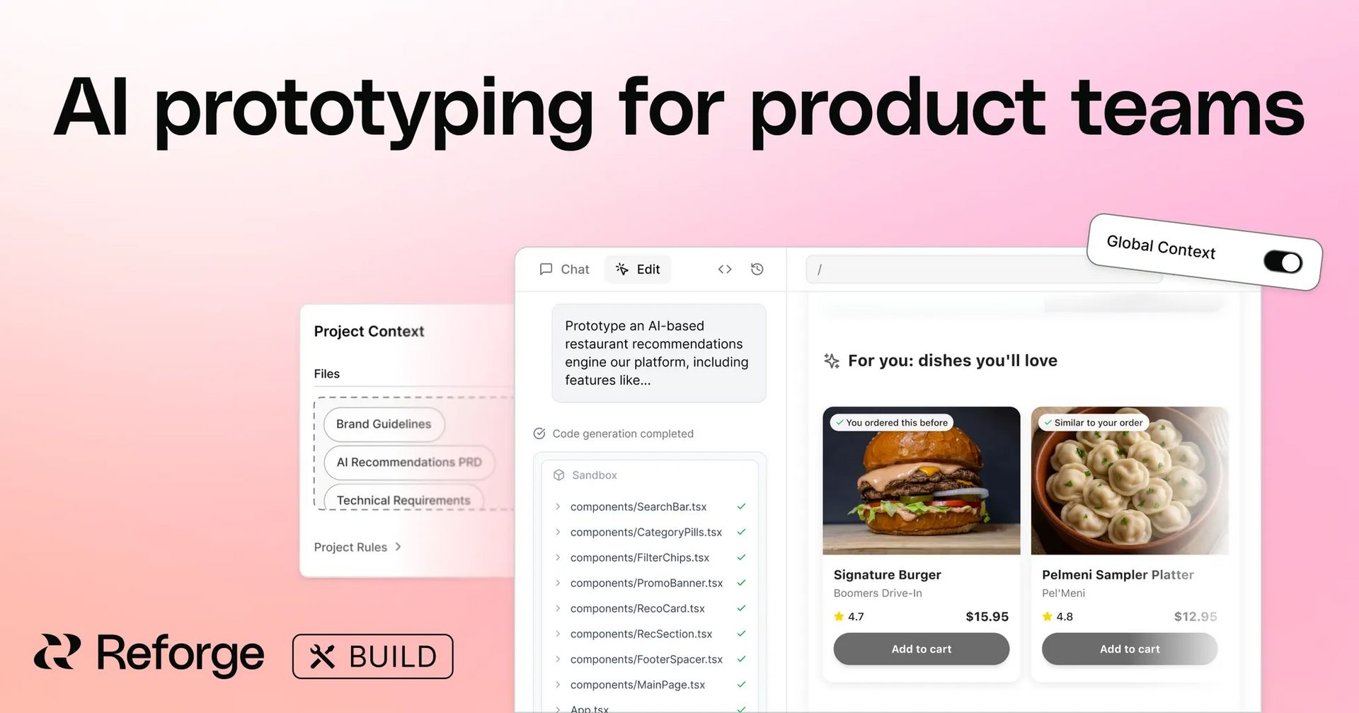But if you're a PM you already have a product and need prototyping built for product teams. That's what Reforge Build does.