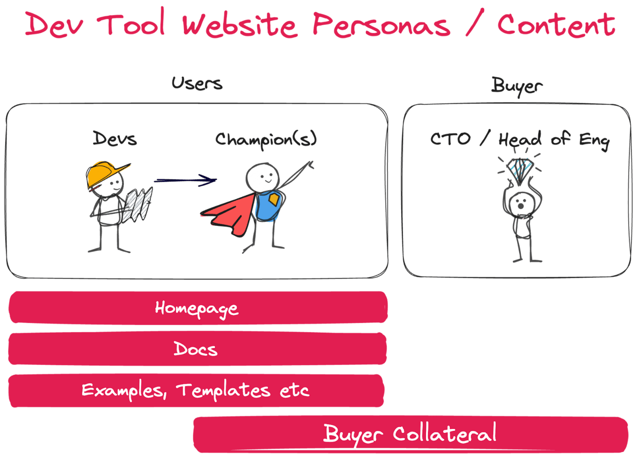 For dev tool websites, the buyer is of secondary importance.