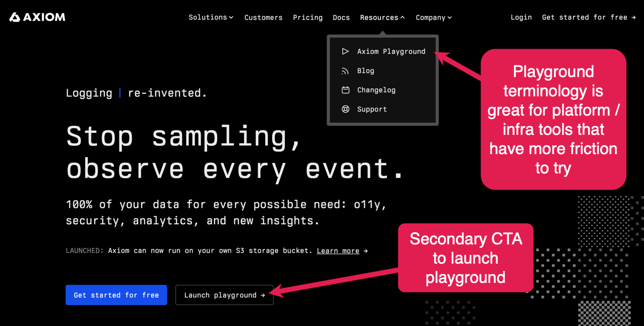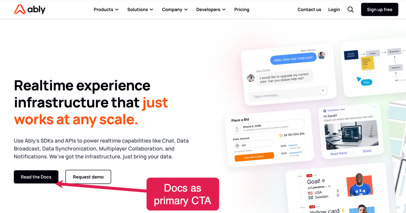 A dev focused homepage doesn’t preclude other buyer-centric website surfaces: It’s normal (and expected) to provide dedicated website surfaces that help communicate company value and aim to overcome typical buyer and organisational objections. Think about trust portals, case studies and so on.