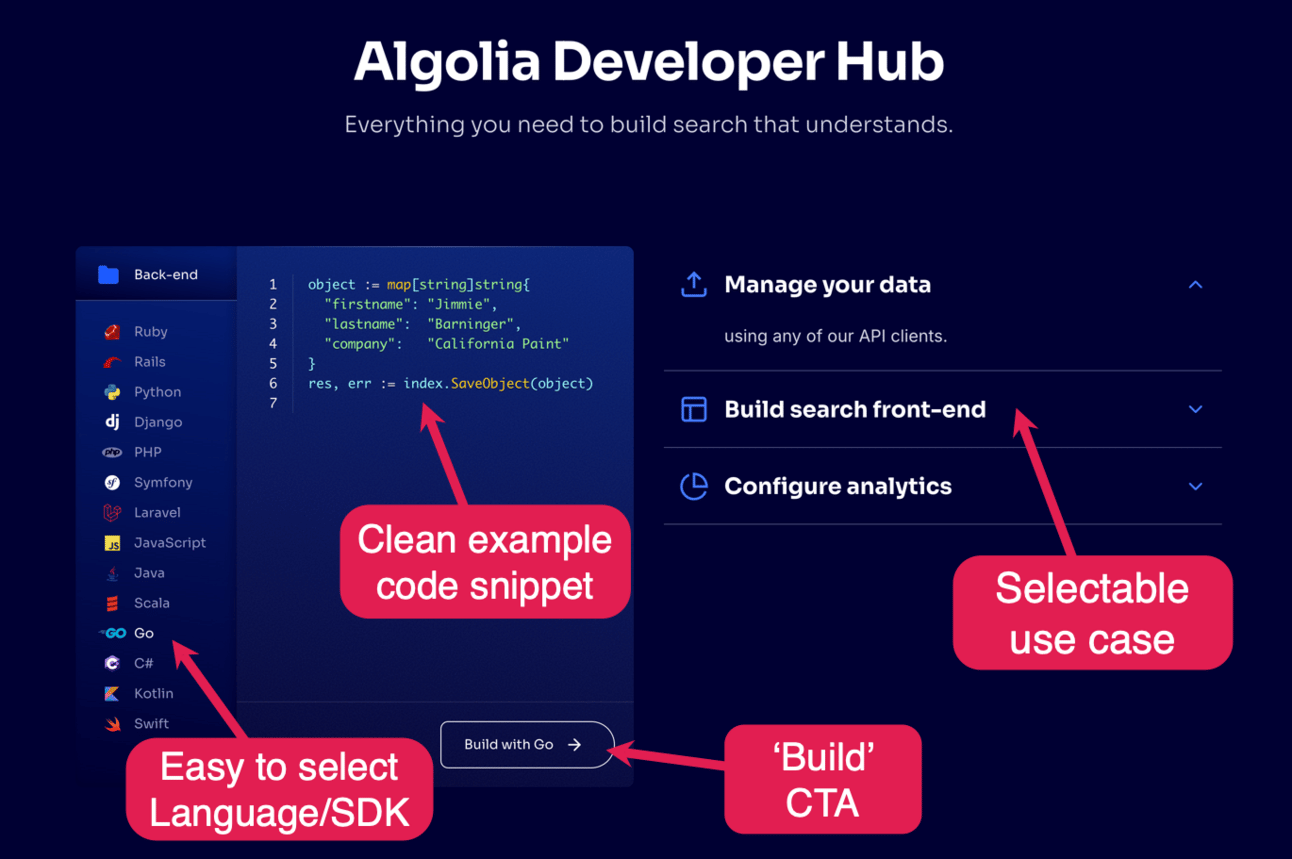 But how do you make that happen? How do you hook devs on that Sunday afternoon when they land on your website?