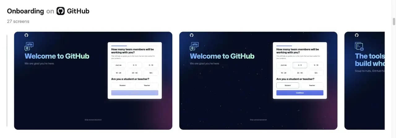 The aim is not to copy-paste what you see in other products, but to drive conversation in your team about why certain approaches might work in a given context, and to take inspiration from that as you consider your own onboarding.