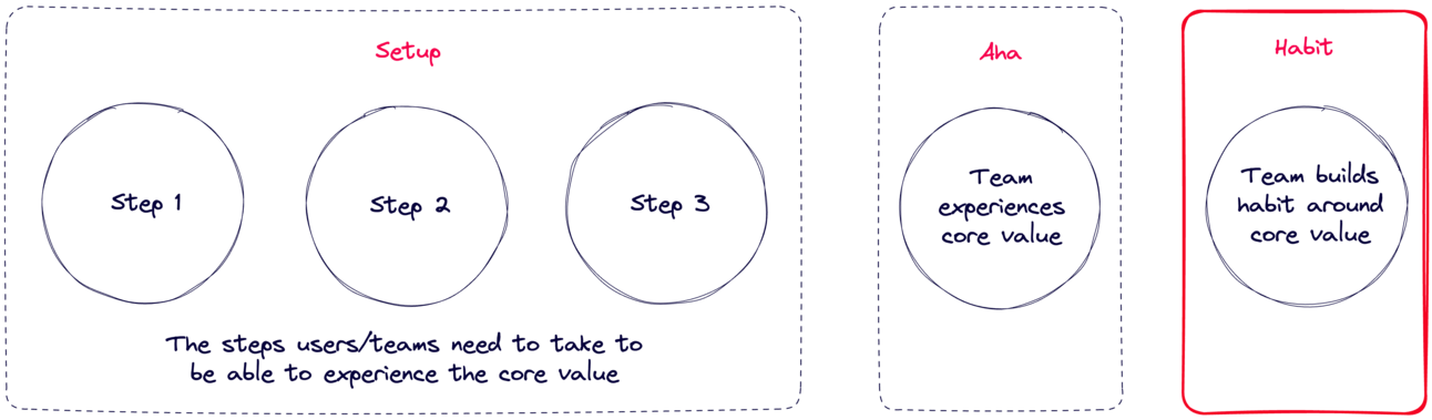 The habit moment is the milestone that is demonstrative of a user or team building a habit around the use of your product. It will correlate with mid-long term retention even more strongly than the aha moment.